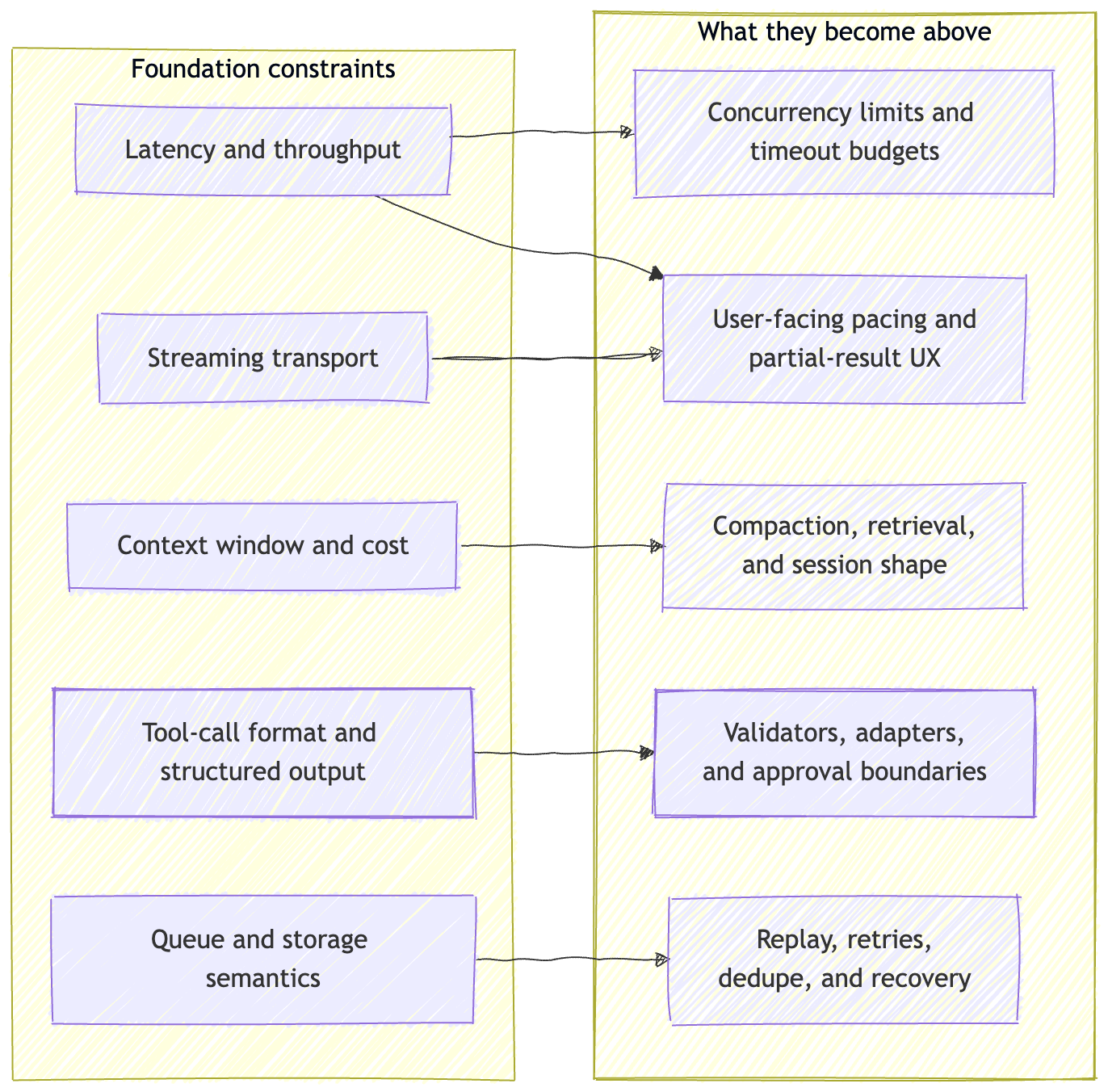 Context window and cost show up later as compaction, retrieval policy, and session shape. Long context can simplify some workloads. It does not remove the need to decide what state lives where, or how much of it you can afford to keep hot.